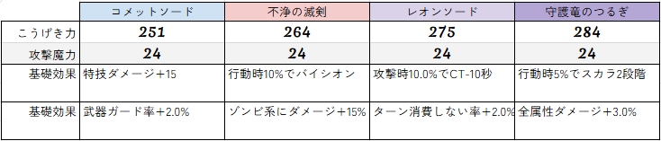 妖精の剣のステータス違いでの実装
