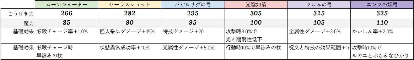 次世代の弓でようやくさみだれうちは攻撃力差で捲られることになるが、光属性特技に限ればまだまだ安泰